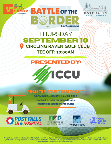 By registering for this event, you consent that photos and videos of you at the event may be published in print or posted online in online photo albums; photo/video-sharing sites such as YouTube, social media sites such Facebook, Instagram and LinkedIn; and in other web-based media at the sole discretion of the Post Falls Chamber of Commerce.