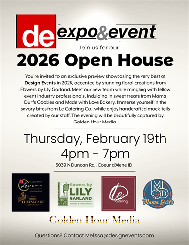 You're invited to an exclusive preview showcasing the very best of Design Events in 2026, accented by stunning floral creations from Flowers by Lily Garland. Meet our new team while mingling with fellow event industry professionals. Indulging in sweet treats from Mama Durf's Cookies and Made With Love Bakery. Immerse yourself in the savory bites form Le Catering Co., while enjoy handcrafted mock-tails created by our staff. The evening will be beautifully captured by Golden Hour Media.