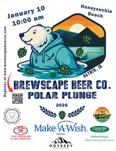 Join us for the Inaugural Brewscape Polar Plunge on January 10 at 10 AM at Honeysuckle Beach! We’re teaming up with Kingston Grace Apparel , Idahome Espresso, Two Wheeler Dealer, Country Financial by Mathew Marquez, and Odyssey Motorsports to dive into icy waters and warm our hearts. Your donation scores a custom T-shirt, a fresh brew, and a direct gift to Make-A-Wish—100% of proceeds fuel wishes for kids in need.